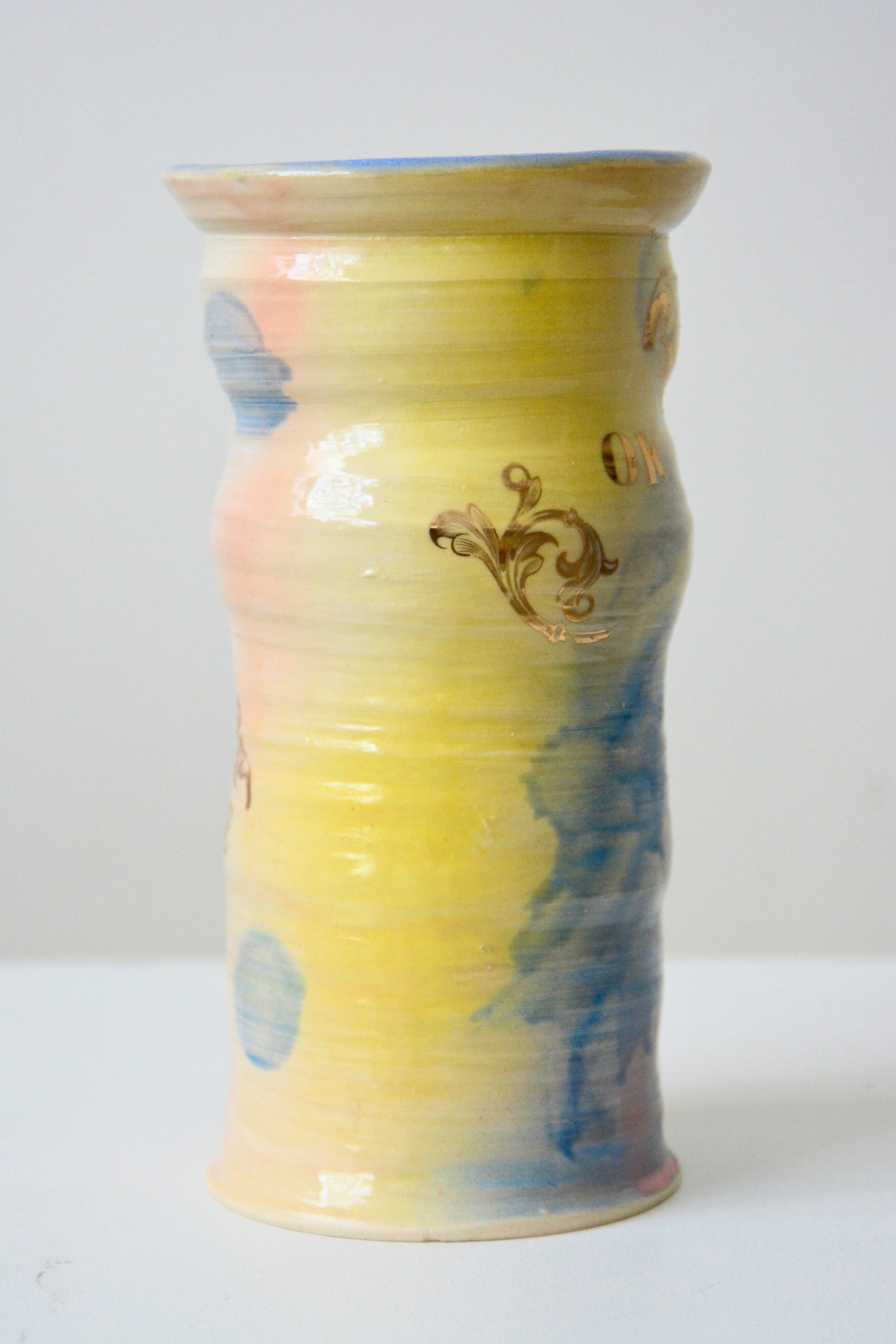 Airbrush Ceramic Vase with Gold Decals