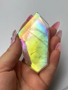 Step into your highest frequency with this Smooth Aura Quartz Specimen — a hand-carved, high-vibrational crystal treated with precious metals to produce its signature iridescent glow. Revered for its ability to cleanse the aura and elevate consciousness, this polished piece is ideal for meditation, ritual work, or spiritual décor.