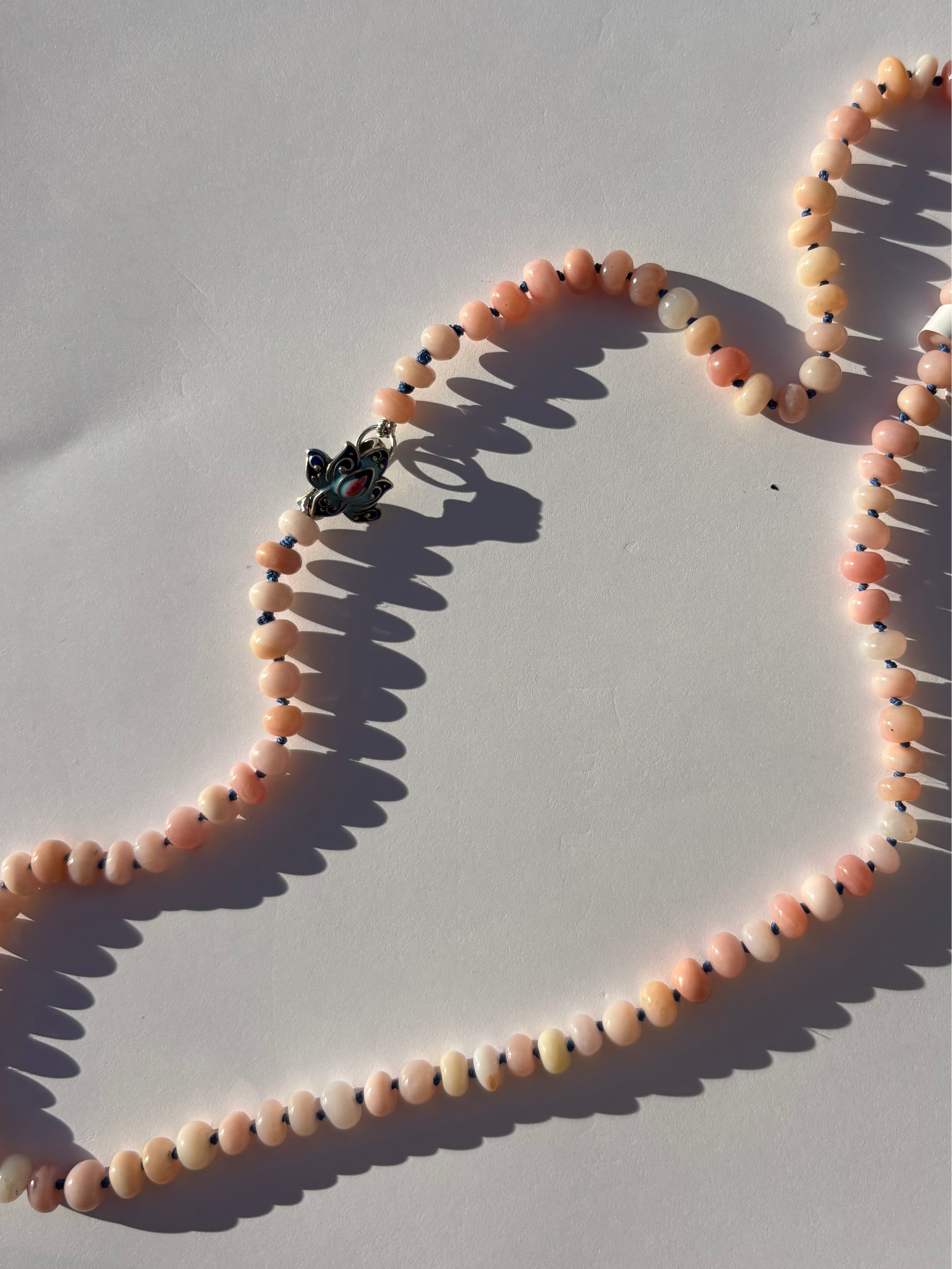 Hand-Beaded Pink Boulder Opal Necklace – Knotted with Intention & Spirit
