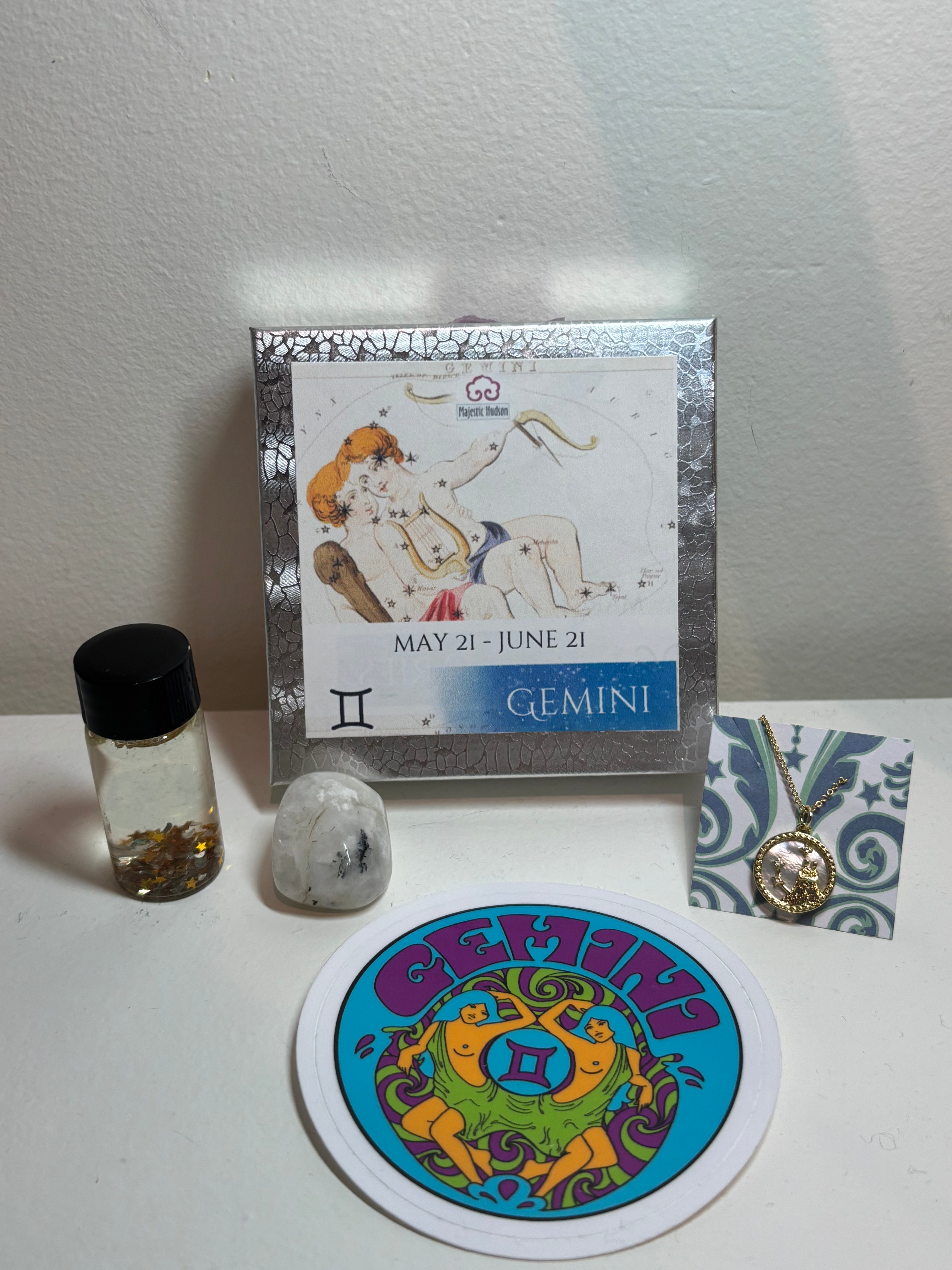 Unbox celestial wonder with the Gemini Astrology Gift Set, a radiant collection designed to honor your sign’s grounded, detail-oriented spirit. Thoughtfully curated for astrology lovers and spiritual seekers, this kit includes a Moonstone crystal to enhance inner guidance, calm, and new beginnings, a Gemini constellation necklace, a custom astrology sticker, and a Lunar Wish Jar to manifest your dreams under the moonlight.