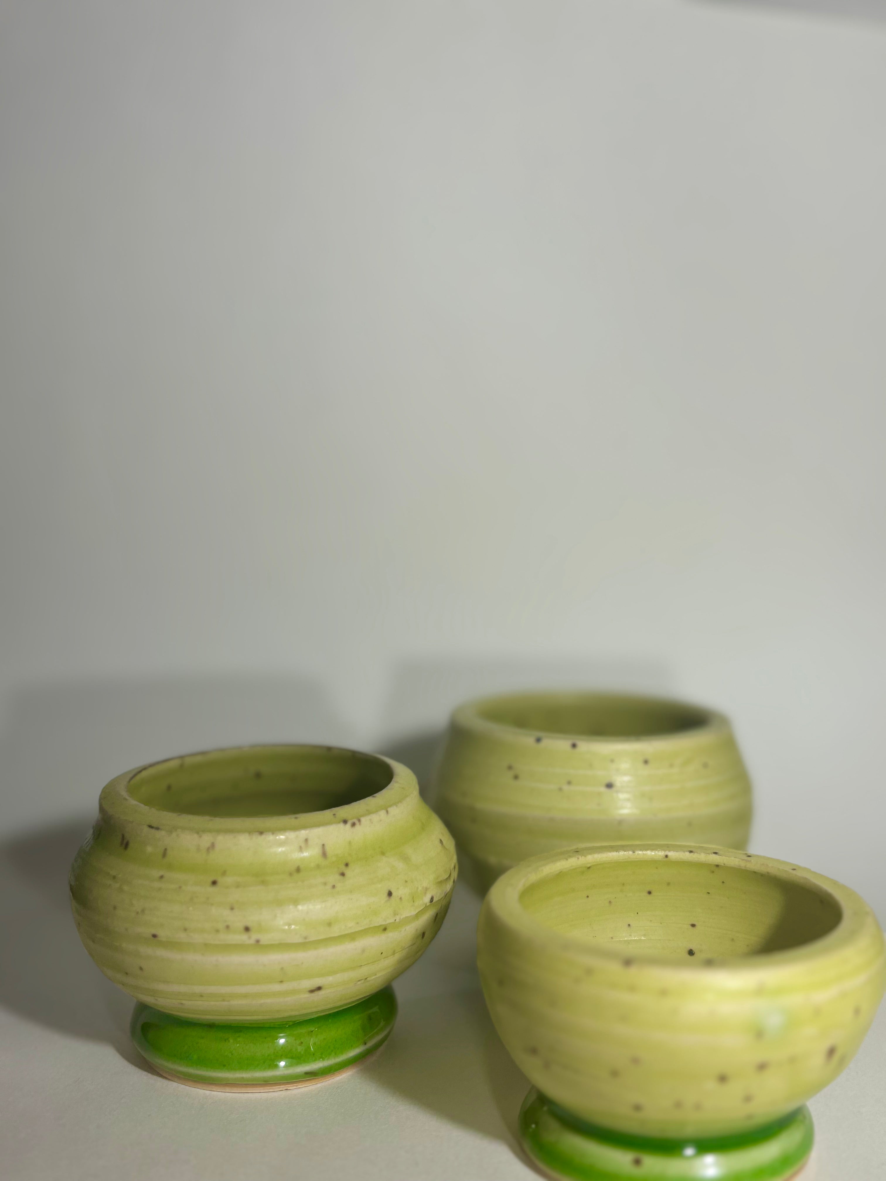 Green on green small handmade ceramic dish