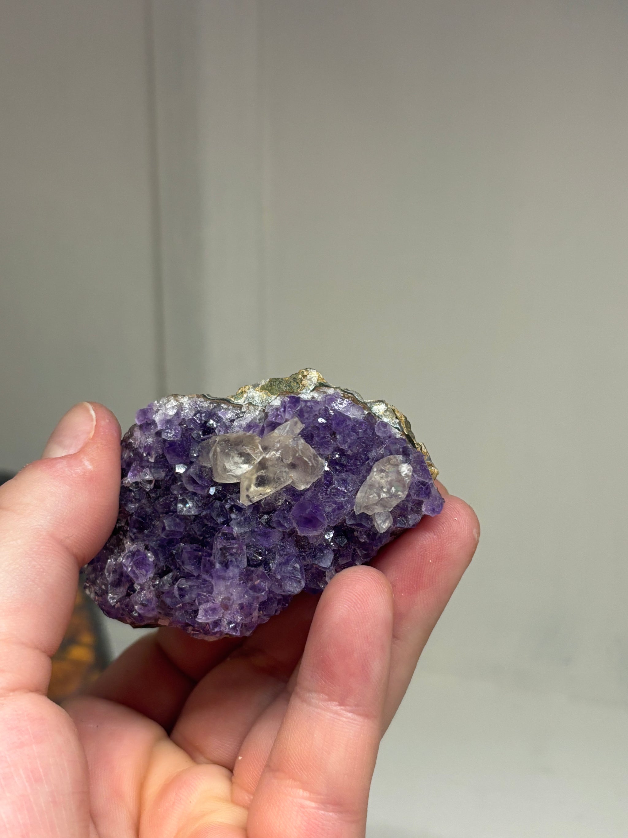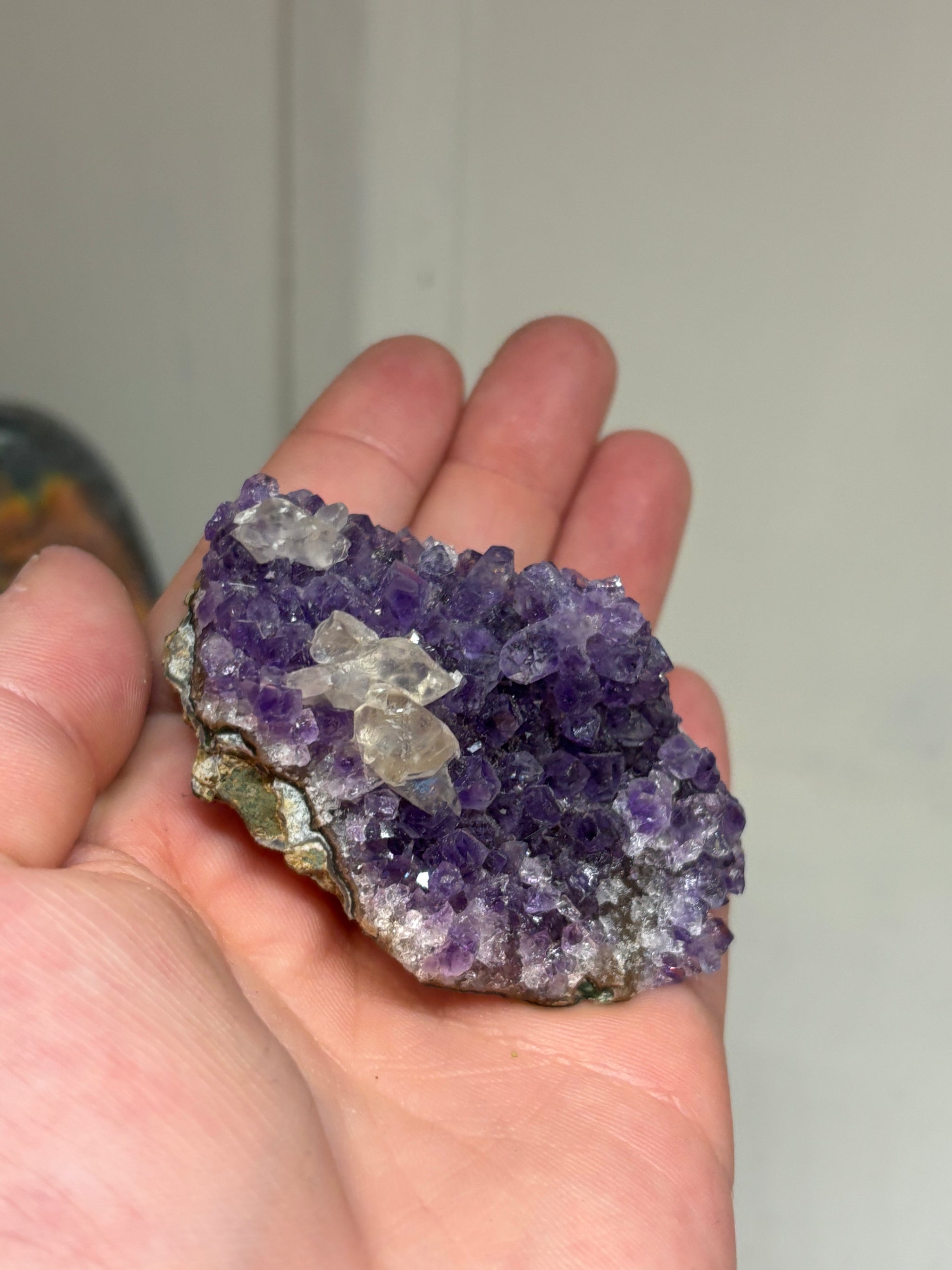 Small Druzy Amethyst Cluster with Clear Quartz Inclusions – One Available | Sparkling Crystal Specimen