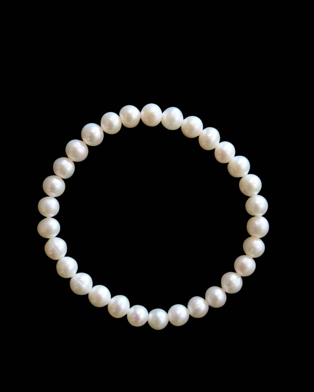 Stretch bracelet with approx 5-7mm round freshwater pearls.